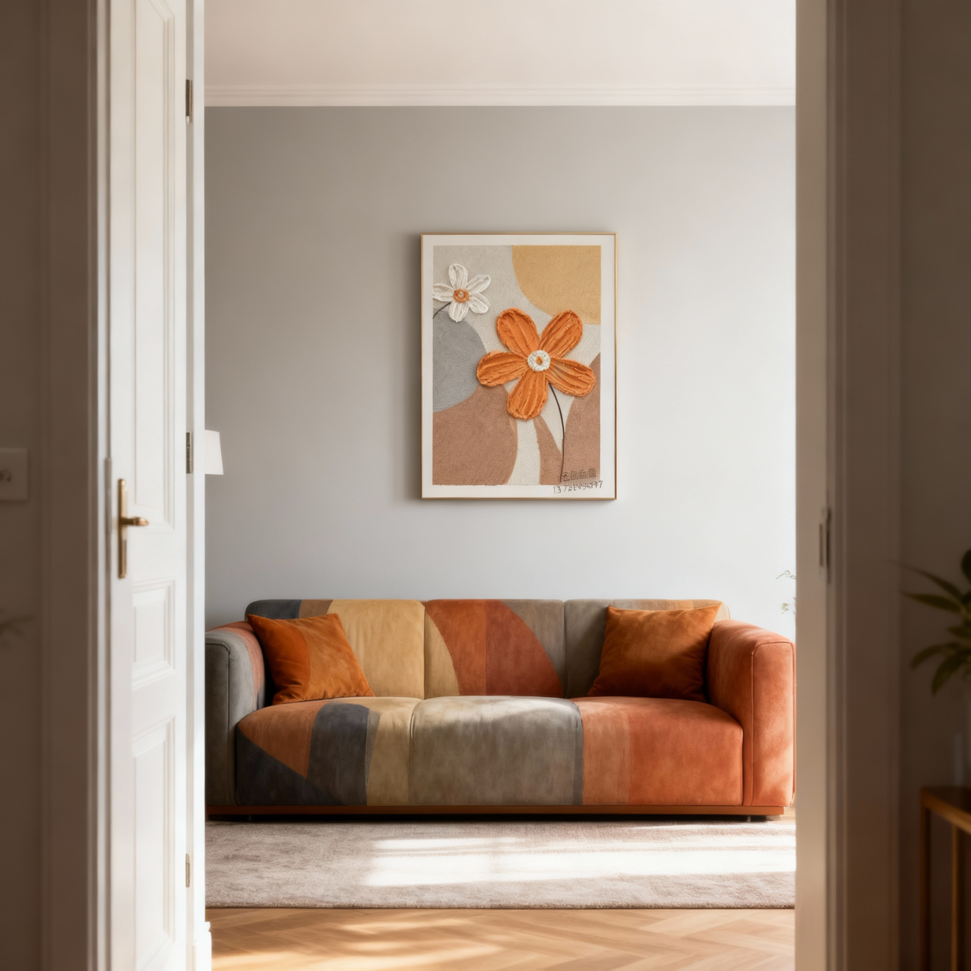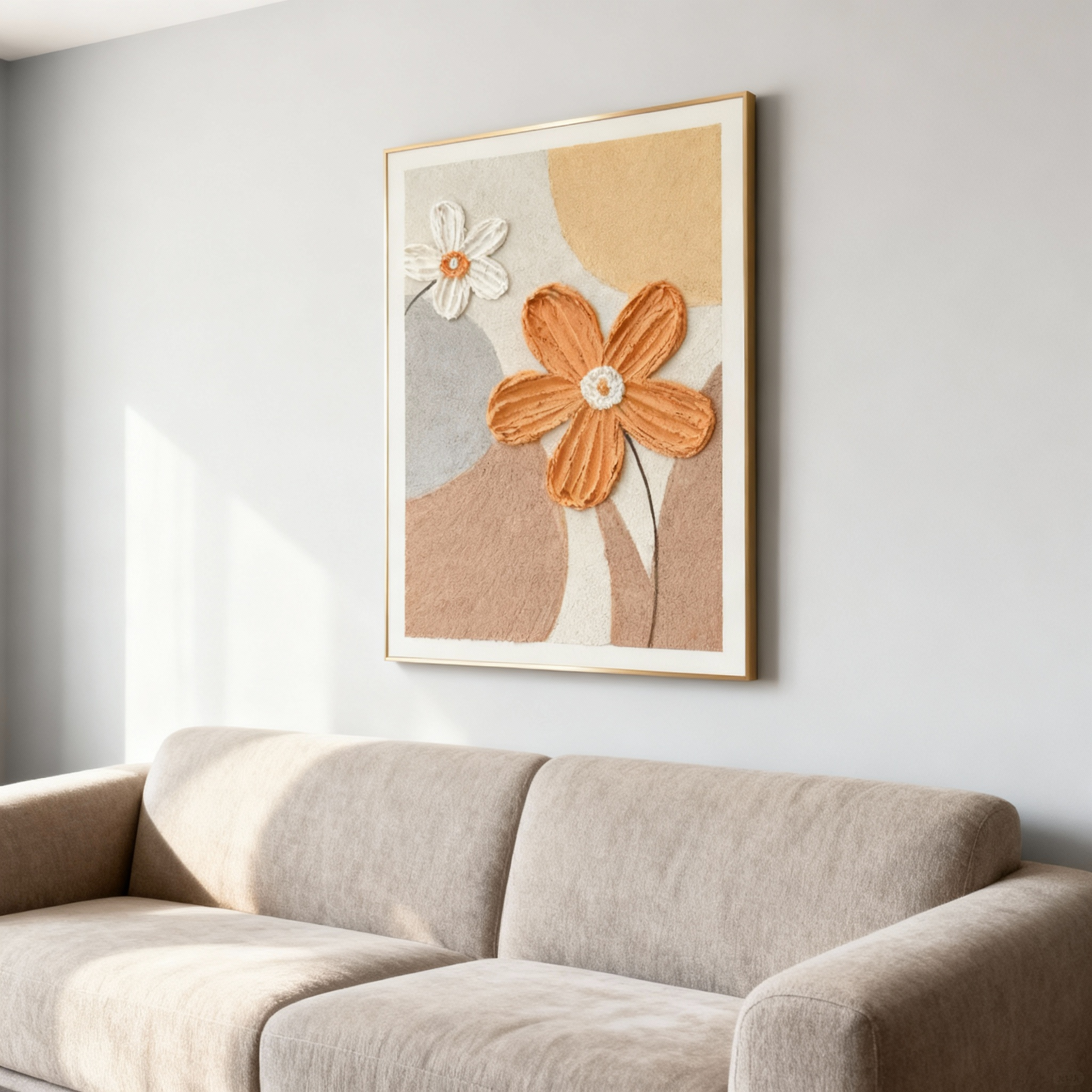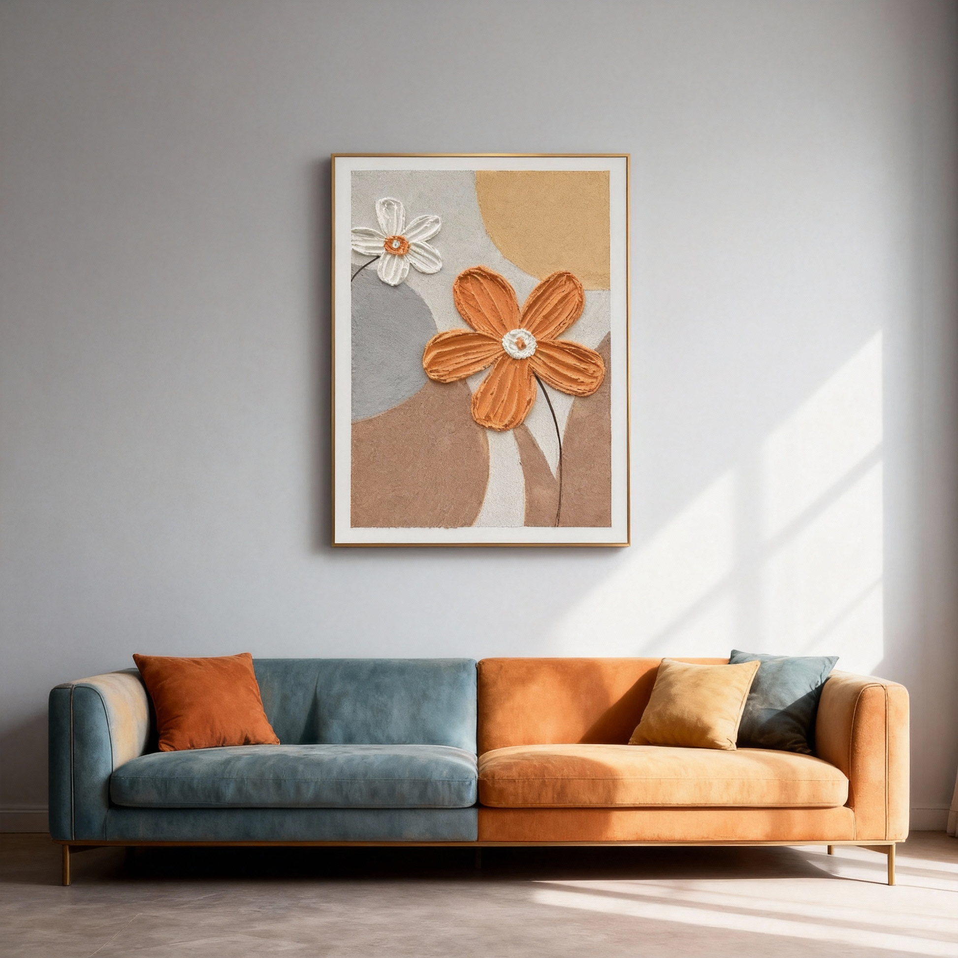 The bold textures and vibrant colors add depth and dimension, making it a perfect focal point for living rooms, bedrooms, and dining spaces. Each piece is uniquely crafted, offering a one-of-a-kind floral masterpiece that radiates warmth and joy.